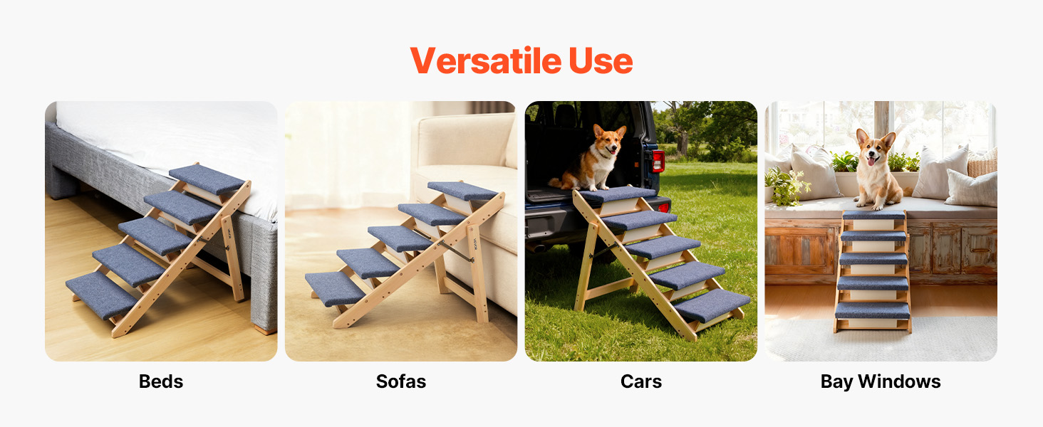 Naše skládací schody pro psy jsou ideální pro malé až středně velké psy, starší domácí mazlíčky nebo zraněné mazlíčky, kteří potřebují pomoc při lezení na vyšší nábytek.
