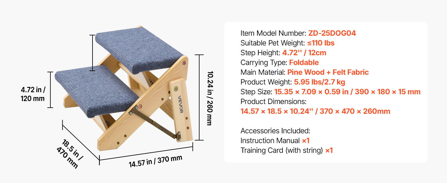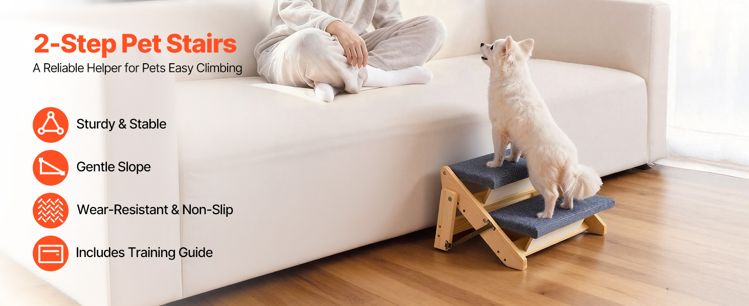 Dvoustupňové schůdky pro psy pomáhají domácím mazlíčkům různých velikostí, zejména starším, zraněným nebo méně pohyblivým zvířatům, bezpečně se dostat na postele a pohovky. Robustní schůdky poskytují bezpečnou oporu a lze je složit pro snadné skladování a přenášení, čímž šetří místo, když se nepoužívají.