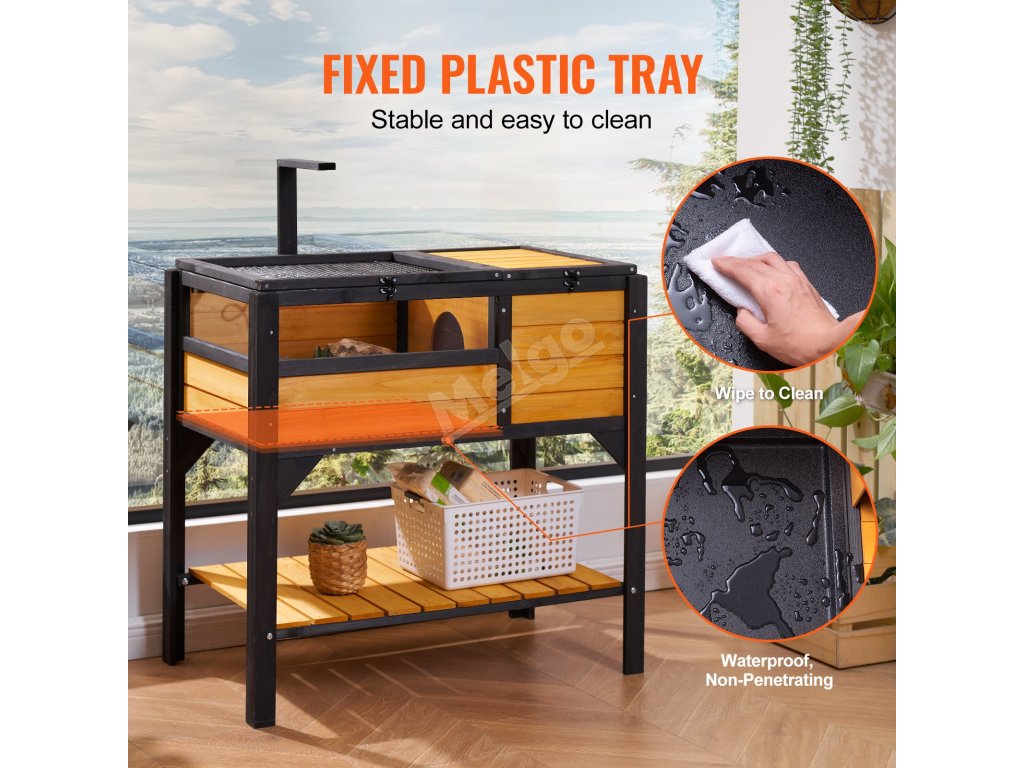 Dřevěné terárium pro želvy, vnitřní/vnější, s podstavcem