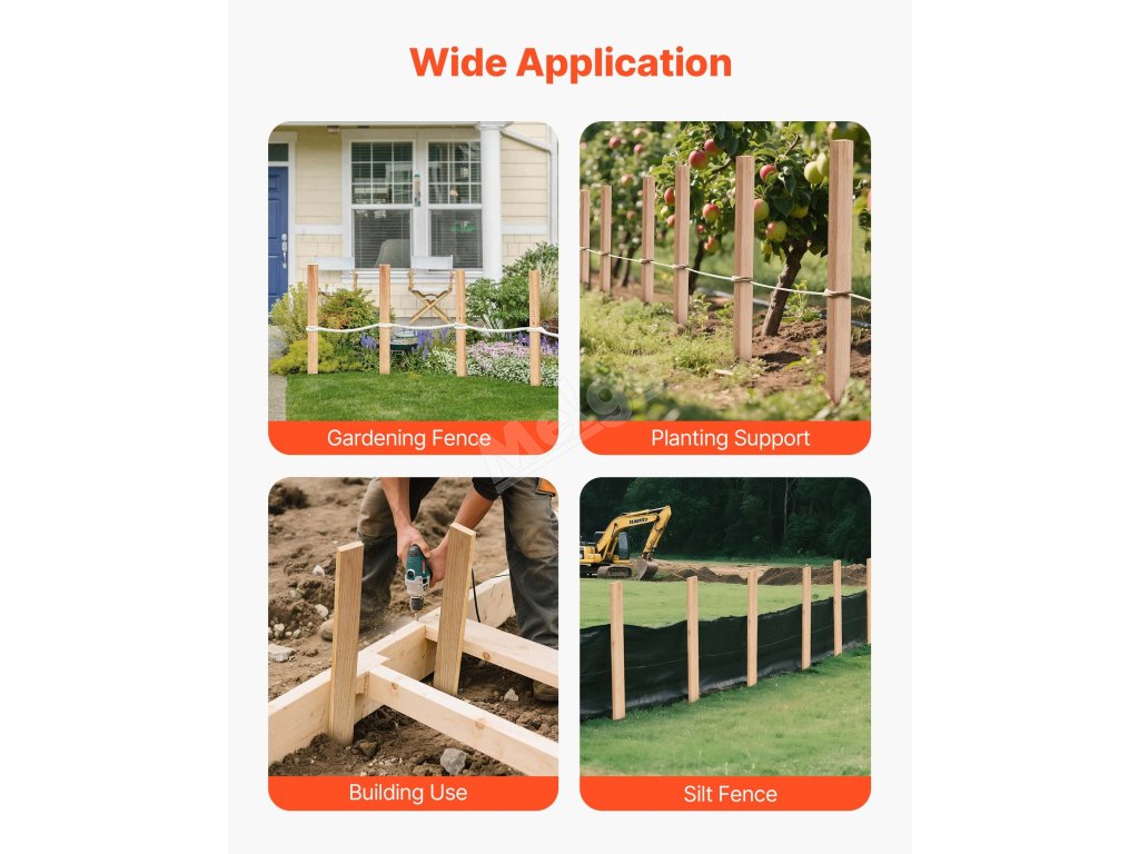 Kromě zahradnictví jsou tyto dřevěné měřicí kůly ideální pro různá použití, například pro instalaci plotů, vyměřování projektů, směrové značky a staveniště.