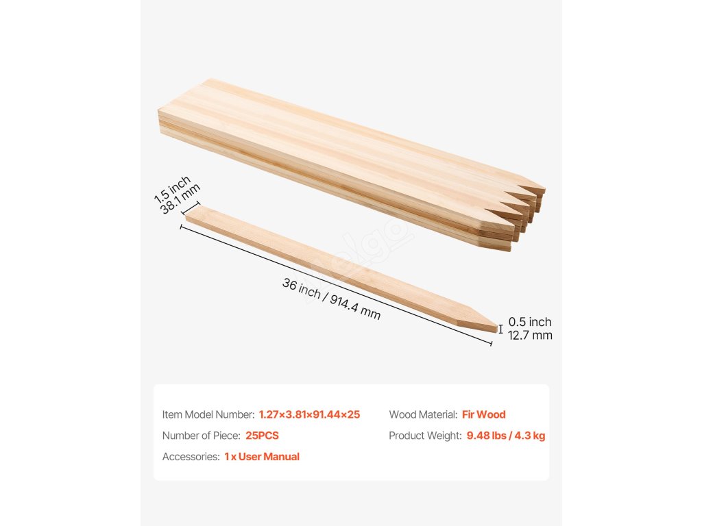 Dřevěné zahradní kolíky 25 ks 12.7×38.1×914.4 mm smrkové se špicí