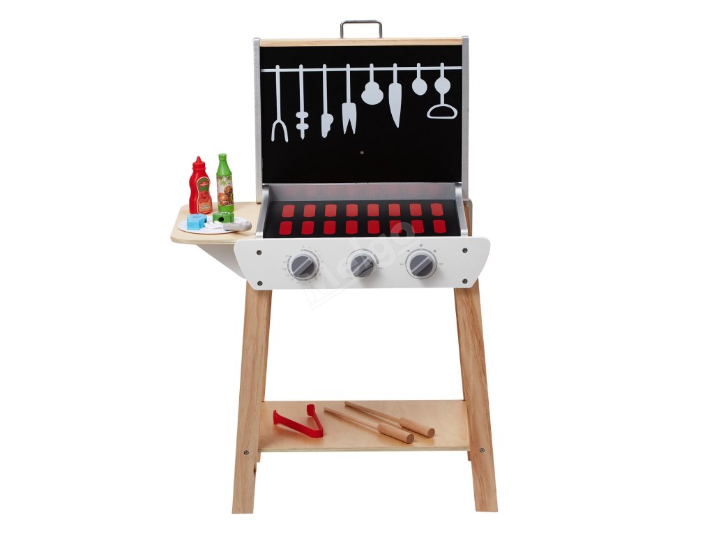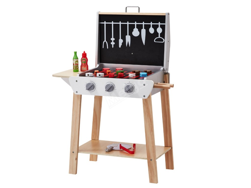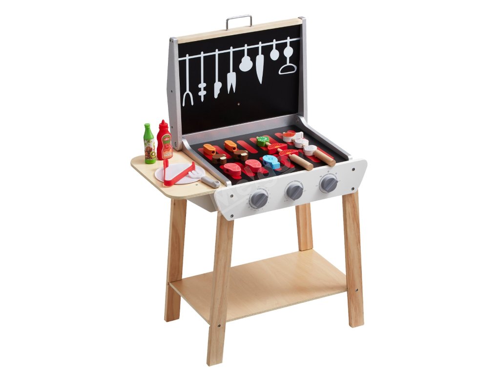 Dřevěný dětský gril na hraní s 21 díly a příslušenstvím 3+