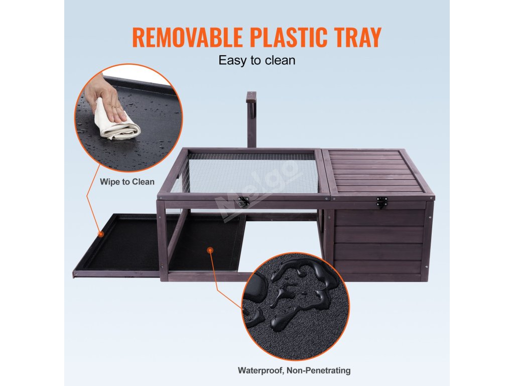 Integrovaná plastová vanička je vodotěsná a snadno se čistí, takže účinně chrání vnitřní prostředí želvího výběhu. Tato funkce usnadňuje čištění a udržuje želví domeček čistý a uklizený, aby v něm bylo zdravé a pohodlné prostředí.