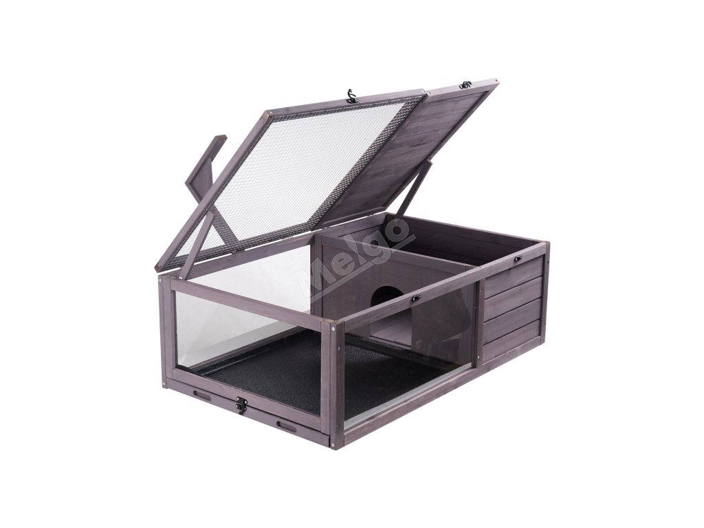 Dřevěný domeček pro želvy 2 komory interiér/exteriér 38×24×13 inch