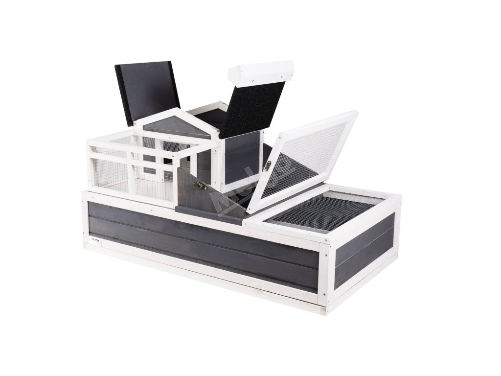 Střechu spacího prostoru lze otevřít, aby se váš mazlíček mohl vyhřívat na slunečním světle. Kovovou síťku ve středovém okně lze otevřít pro krmení a interakci. Uzamykatelný horní kryt s hustou síťovinou účinně brání úniku zvířete. Vhodné pro různá malá zvířata.