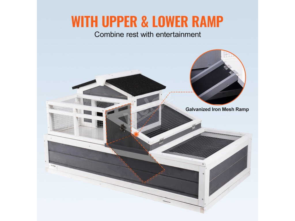 Náš želví výběh je dvoupatrová stavba s prostorným prostorem pro aktivity ve spodním patře a s balkonem a spacím prostorem v horním patře. Spojovací rampa umožňuje vašemu mazlíčkovi volně se pohybovat mezi jednotlivými zónami a užívat si zábavu ve velkém prostoru.