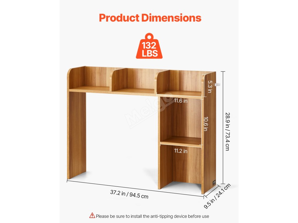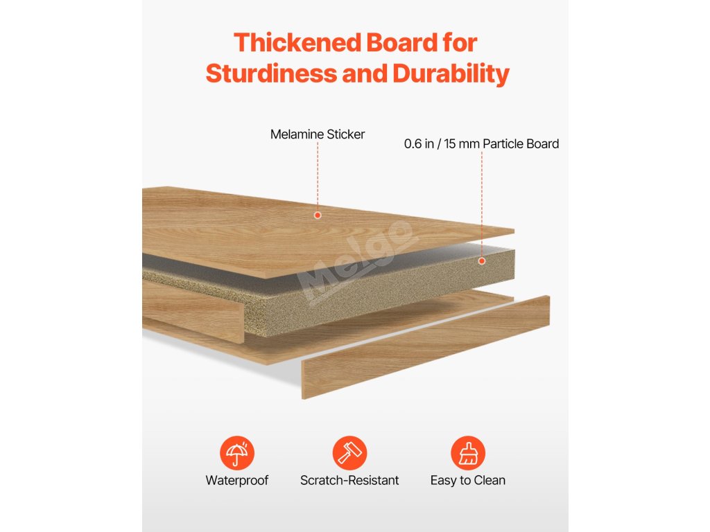 Robustní a odolná stolní knihovna je vyrobena z 0,6 palce silné dřevotřísky, která je hladká, odolná proti vodě, poškrábání a snadno se čistí - nabízí pevnou základnu pro všechny vaše knihy.