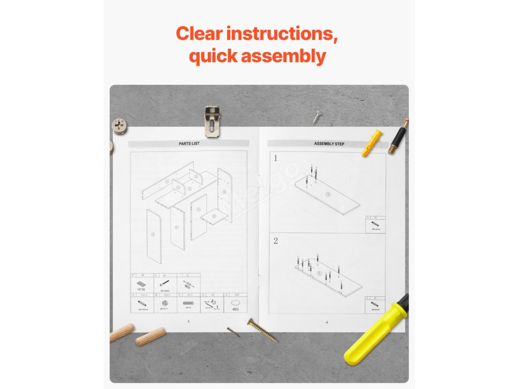 Podrobný návod k montáži naleznete v uživatelské příručce, která vám umožní tento stolní regál snadno a rychle sestavit.
