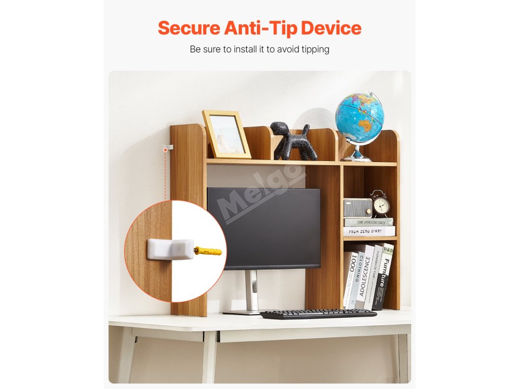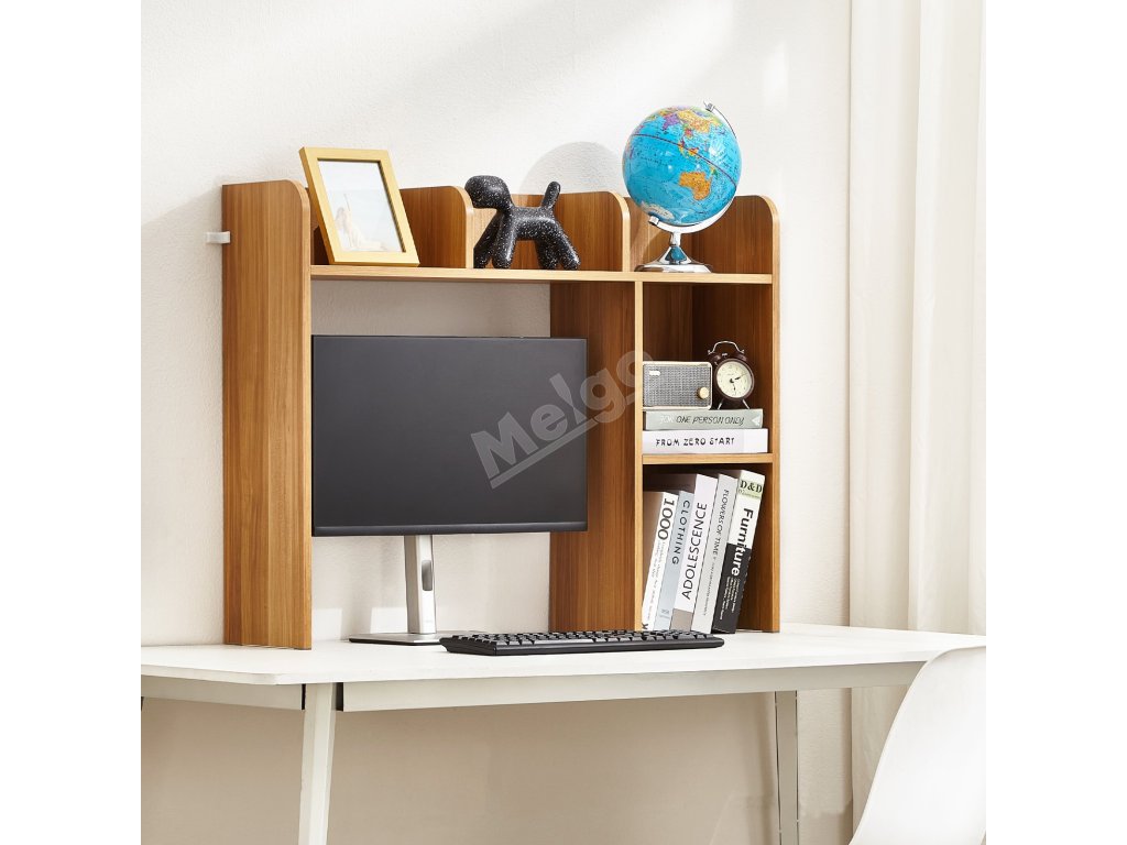 Tato policová lišta na stůl je vybavena několika přihrádkami pro uspořádání knih, kancelářských potřeb a dalších věcí a pomáhá vytvořit uklizený pracovní prostor a zvýšit produktivitu.