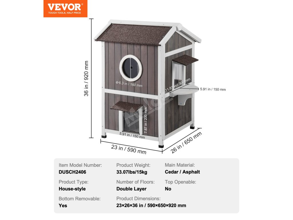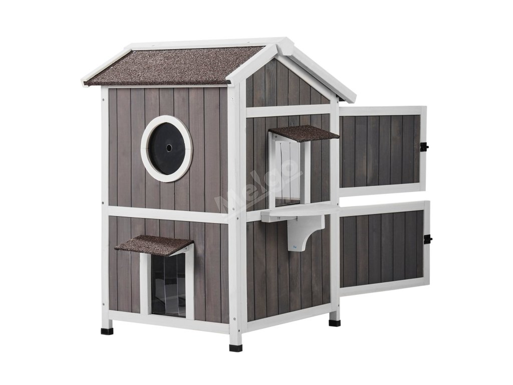 Dřevěný venkovní domeček pro kočky 2-patrový s oknem 23"L×26"W×36"H
