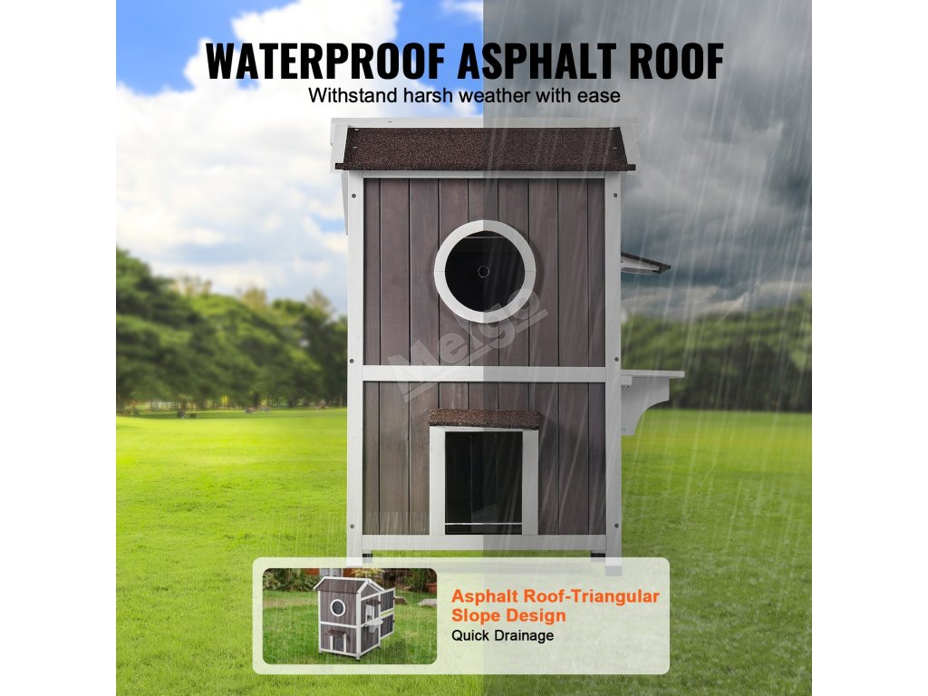 Tento venkovní domek pro kočky je vyroben z kvalitního jedlového dřeva, natřen barvou na vodní bázi a nabízí vícevrstvou ochranu odolnou proti korozi. Čtyři vodotěsné podložky pod nohy zvyšují vodotěsnost. Zajistěte své kočce bezpečí a zdraví!