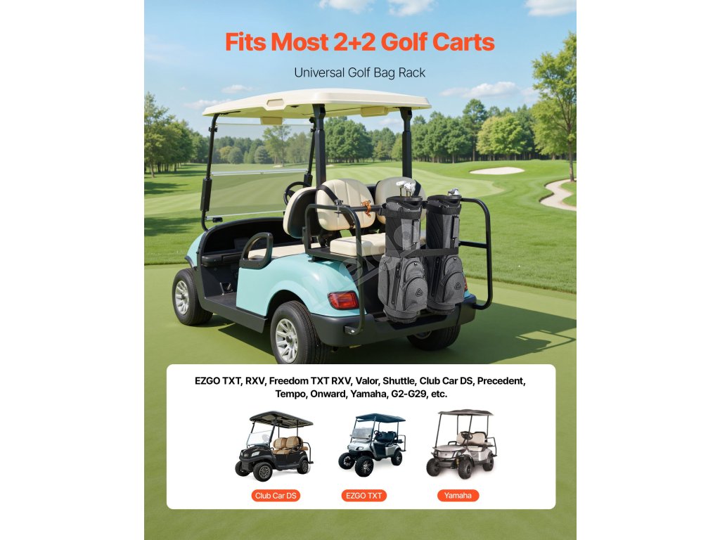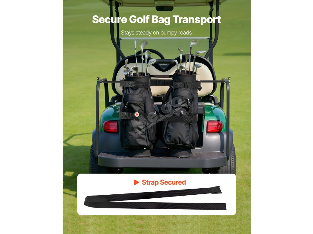 Zajistí vaše golfové hole během přepravy s pevnou stabilitou! Je určen k montáži na 2+2 sedadla a jeho sestavení trvá jen několik minut - žádné vrtání, žádné poškození. Integrované zajišťovací popruhy pevně zajistí bagy i na nerovném terénu. Pozvedněte svou hru díky tiché přepravě a nerušenému švihu.