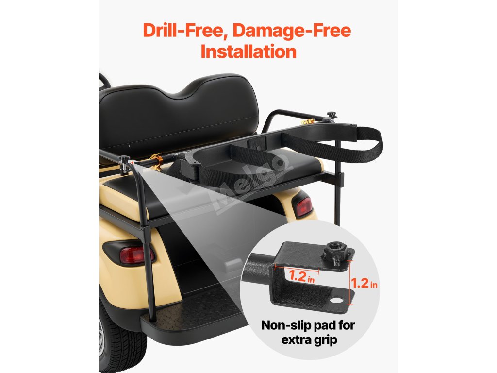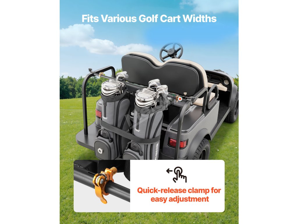 Náš držák tašek na zadní sedadlo golfového vozíku se nastavuje v rozmezí od 30,7 do 49,6 palce. Díky vylepšeným rychloupínacím svorkám se přizpůsobí různým šířkám vozíků a hodí se pro všechny modely sedadel 2+2, čímž poskytuje spolehlivou oporu