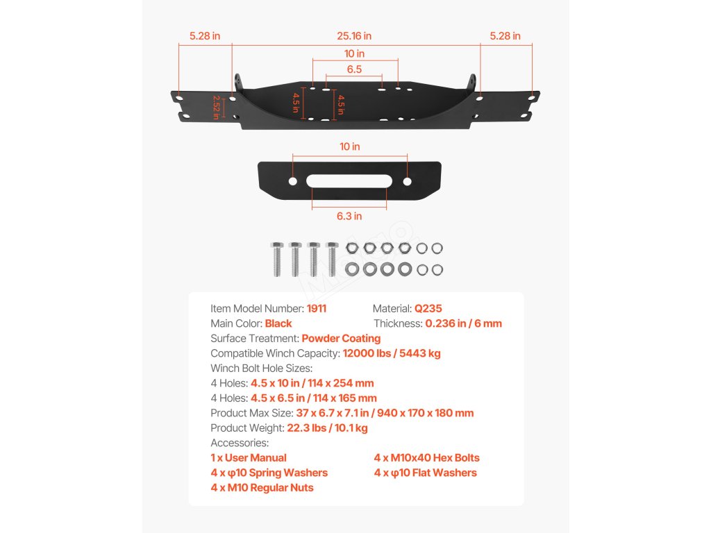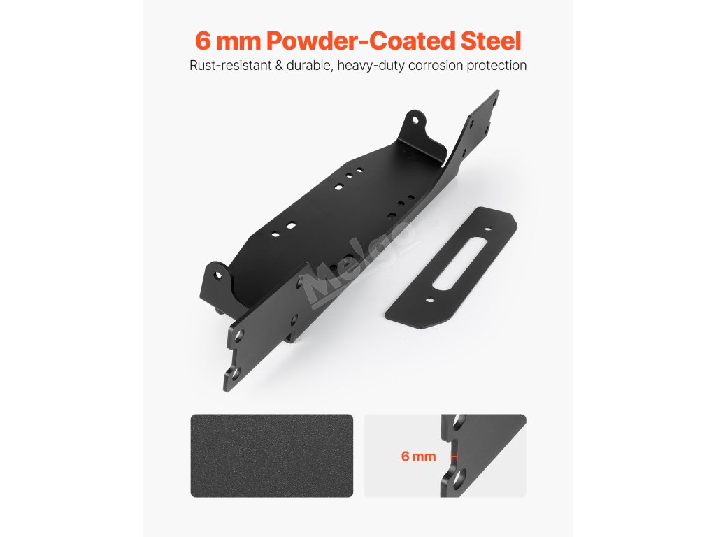 Držák navijáku na tažné, 12000 lbs / 5443 kg, 2 otvory, černá ocel