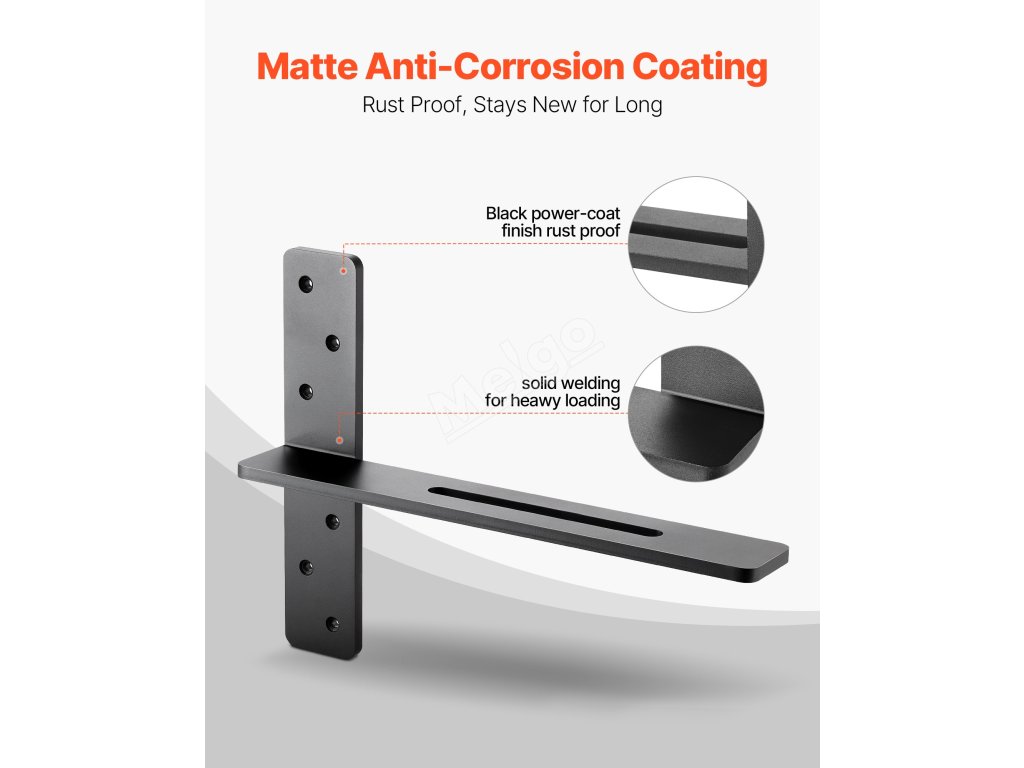 Tieto dekoratívne konzoly na police sú vyrobené z vysokokvalitnej ocele a unesú až 200 kg. Náter odolný proti korózii zvyšuje odolnosť, zatiaľ čo zosilnené tyče a zosilnené zváranie zabezpečujú pevnosť bez praskania.