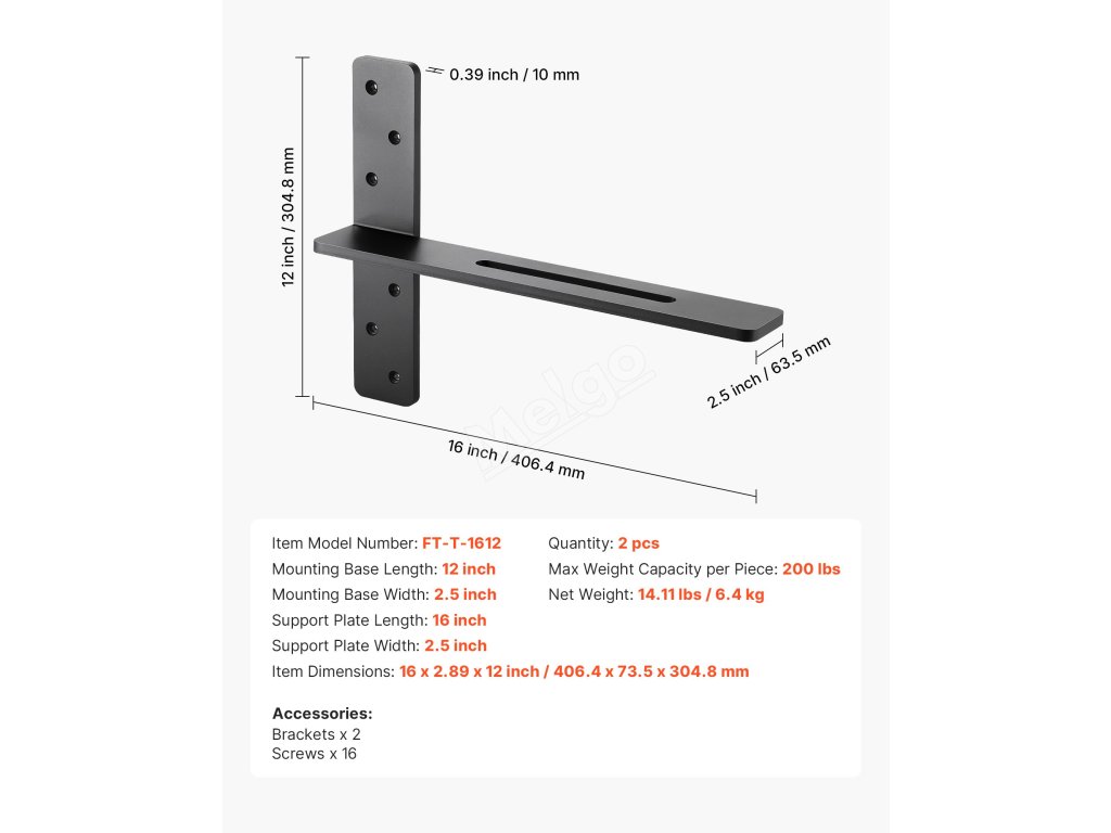 Držáky polic 2 ks, nosnost 90 kg/200 lbs, 406.4×73.5×304.8 mm