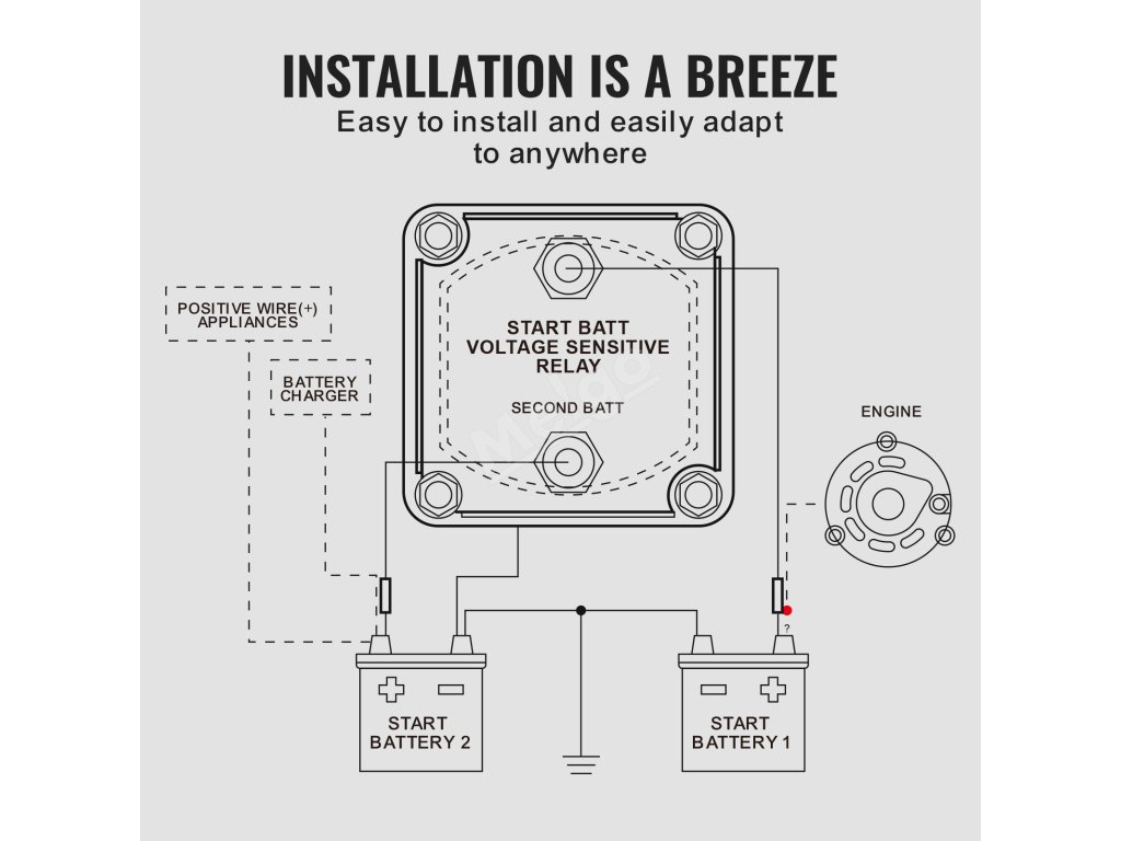 Díky rozměrům pouhých 2,7'' x 2,7'' x 2,2'' lze náš kompaktní 140A napěťově citlivý reléový oddělovač umístit téměř kamkoli! Je ideální pro montáž pod kapotu nebo dovnitř terénního vozidla a bezchybně spolupracuje se systémem dvou baterií.