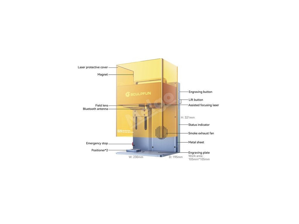 Obecné | Štítek: sculpfun Typ: laserový značkovací stroj Model: G9 Barva: oranžová |