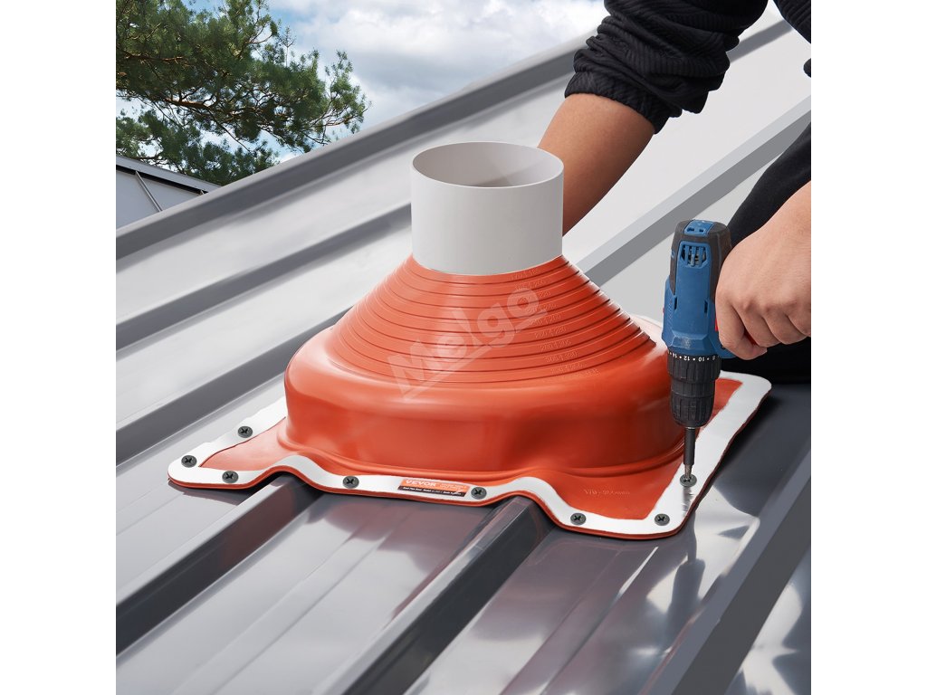 Kovová objímka na strešné potrubie je vyrobená s 0,6 mm základňou z hliníkovej zliatiny, ktorá je vysoko flexibilná, čím zabezpečuje tesné priľnutie k streche a potrubiu pre lepší tesniaci výkon!