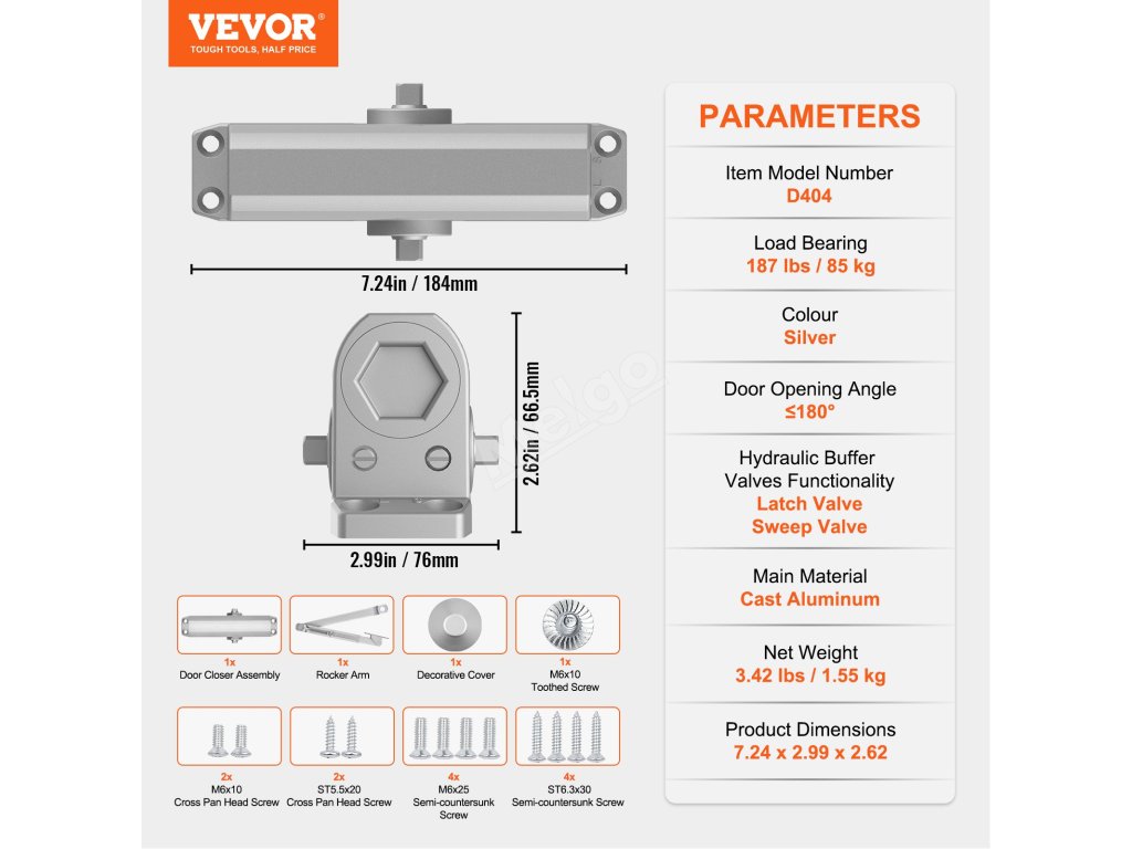 Dveřní samozavírač hydraulický nastavitelný na dveře do 85 kg