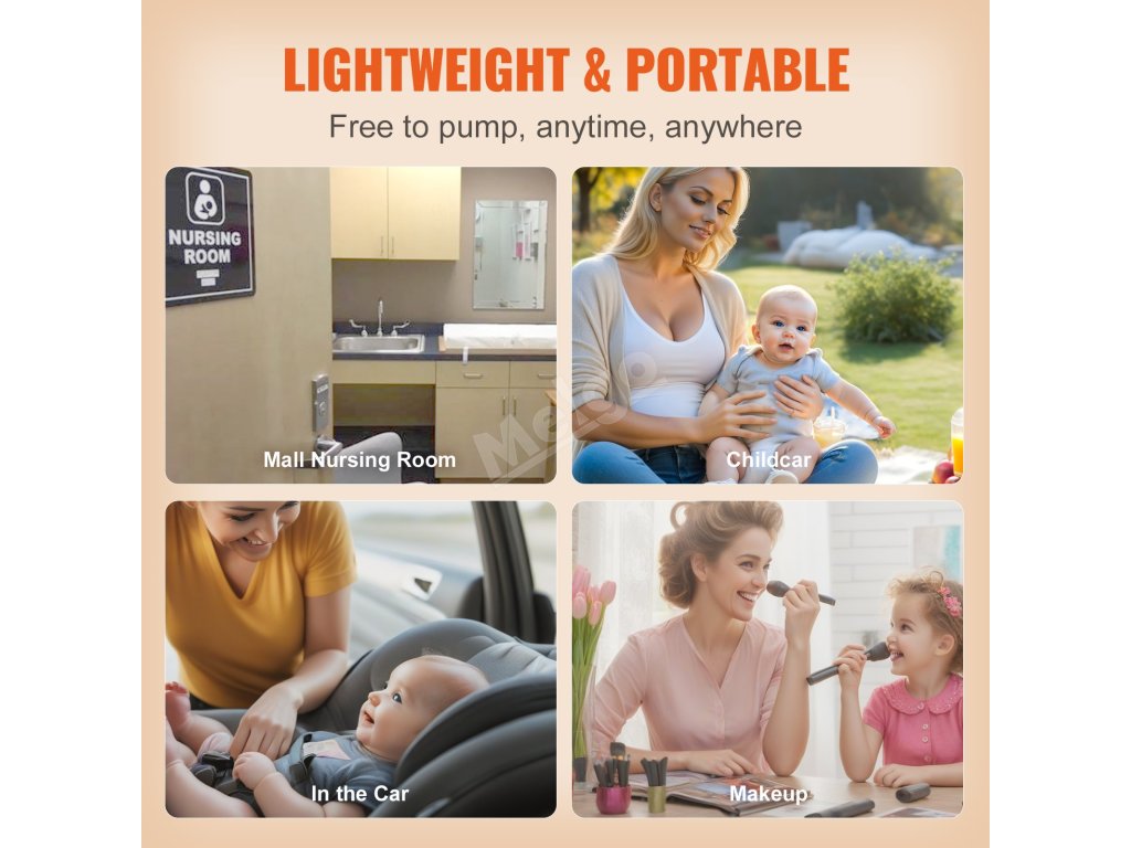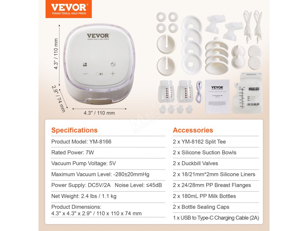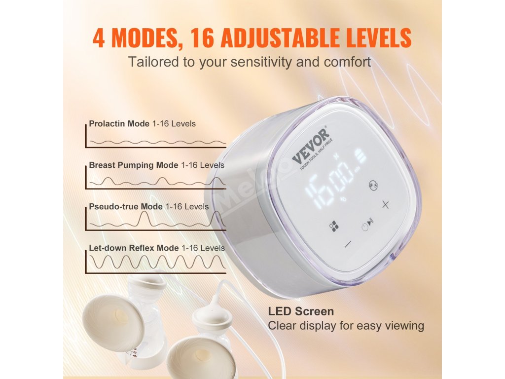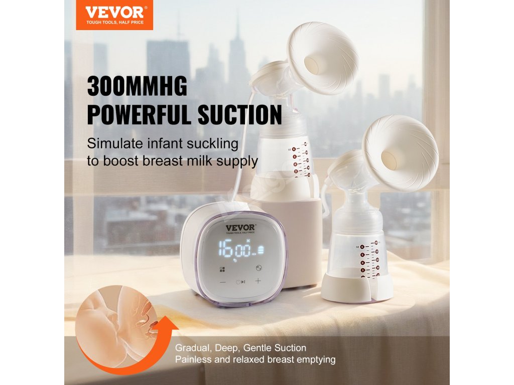 Užijte si snadné mateřství s elektrickými odsávačkami VEVOR. Napodobuje přirozené krmení vašeho dítěte a nabízí diskrétní, nepropustné a tiché odsávání ≤45 dB kdykoli a kdekoli. Její výkonné odsávání 300 mmHg, 4 režimy a 16 nastavitelných úrovní zajišťují pohodlné a účinné odsávání mléka.