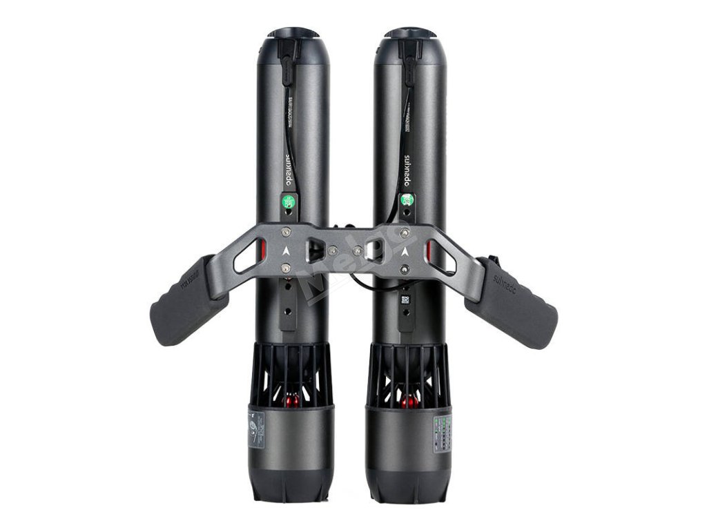 Dvojitá rukojeť Waydoo je inovativní příslušenství, které umožňuje používat dva podvodní skútry současně. Díky němu můžete zdvojnásobit své schopnosti a užívat si maximální rychlost až 2 m/s. Toto řešení je ideální pro ty, kteří chtějí ještě více adrenalinu a chtějí prozkoumávat podvodní světy neuvěřitelnou rychlostí. Díky kombinaci dvou podvodních skútrů je manévrování ještě přesnější a podvodní dobrodružství ještě vzrušující.