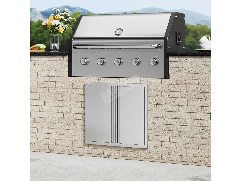 Dvojitá nerezová dvířka pro gril 660×610 mm, zapuštěná madla