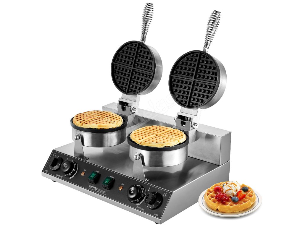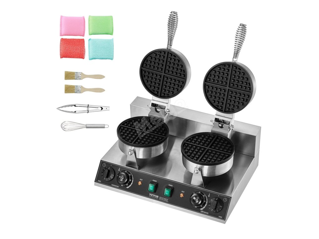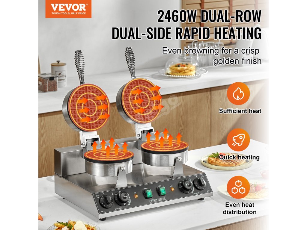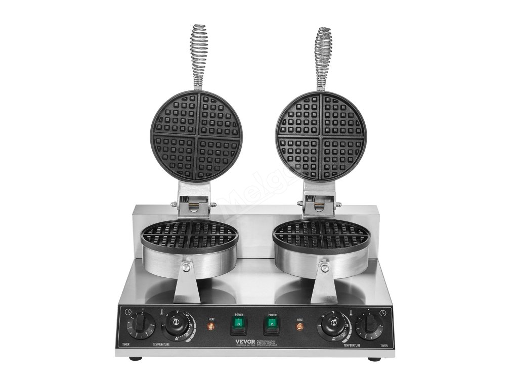 Dvojitý kulatý vaflovač 2460W, nerez, nastavitelná teplota a čas
