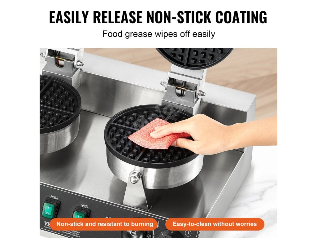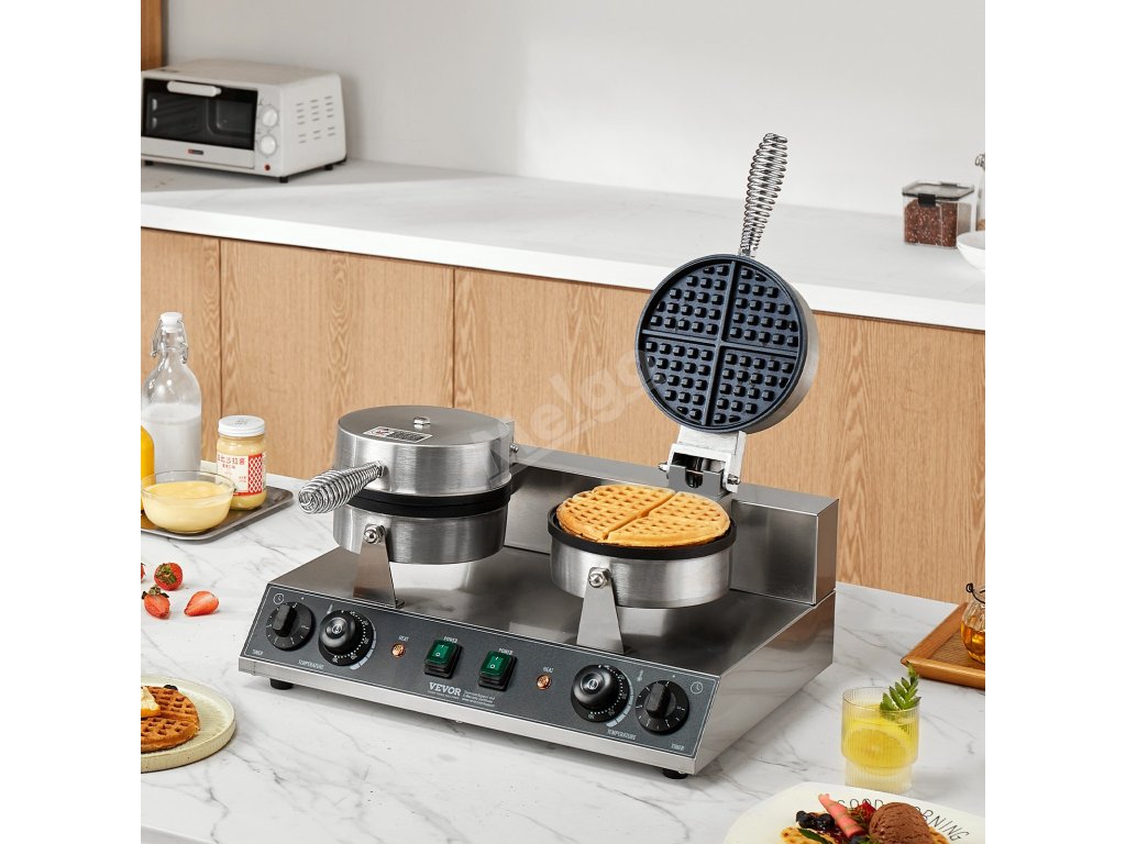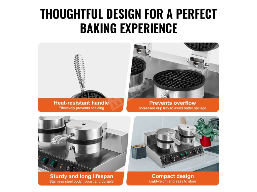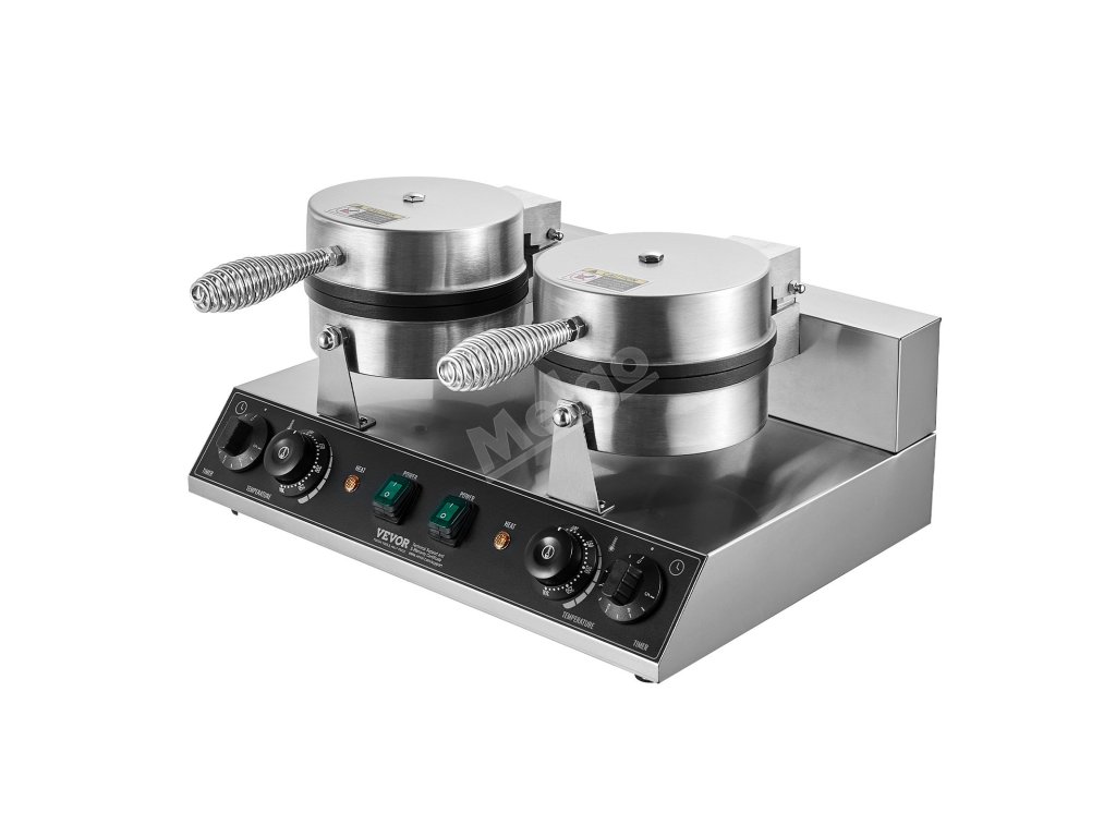 Dvojitý kulatý vaflovač 2460W, nerez, nastavitelná teplota a čas