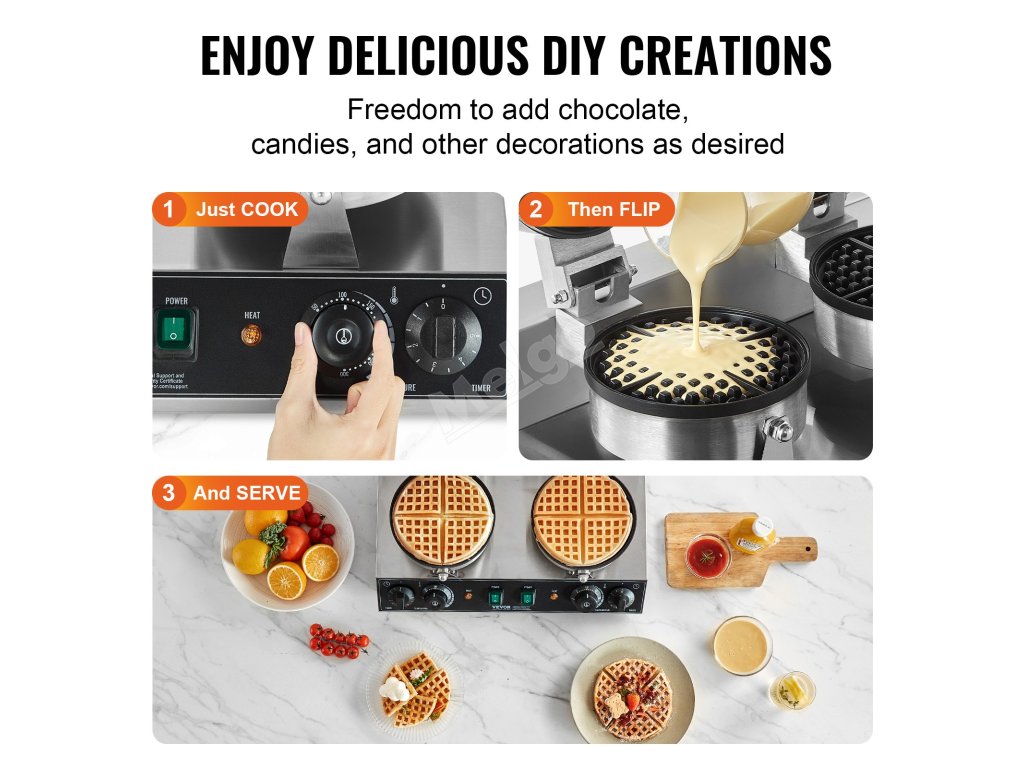 S tímto strojem na pečení vaflí můžete připravit lahodné vaflové dezerty pro svou cukrárnu, které uspokojí každého při snídani nebo odpoledním čaji. Díky svému jedinečnému panelovému designu vyniká a je tou nejlepší volbou pro váš stánek s občerstvením.