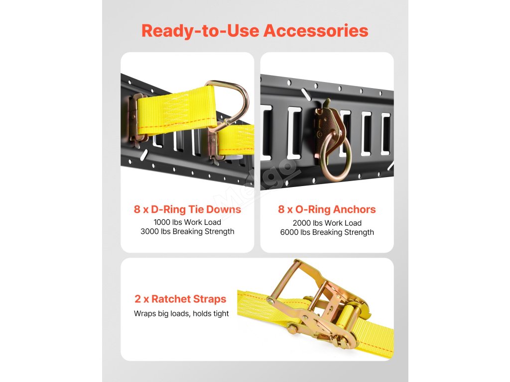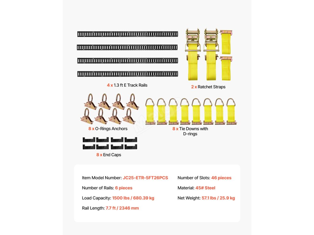 E-track upevňovací sada 4×2,3 m, 26 dílů, 2 napínací popruhy