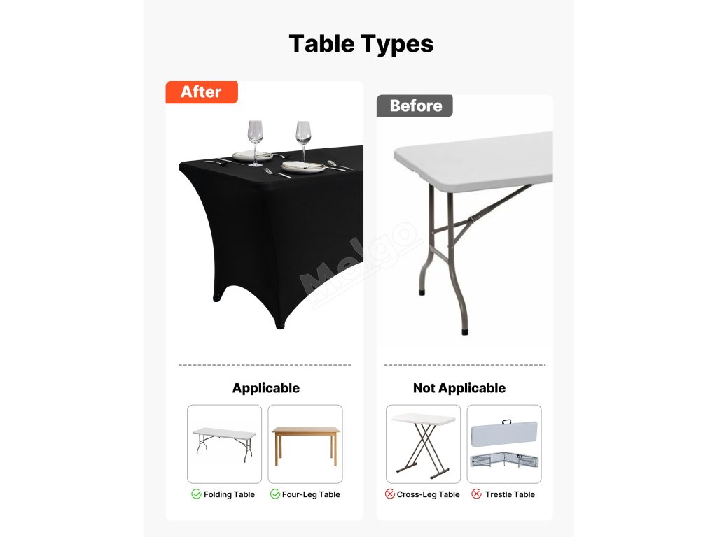 Elastické ubrusy 10 ks pro 6FT obdélníkový stůl, bez záhybů, pratelné