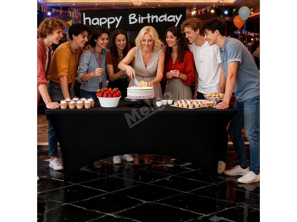 Tento elegantní strečový potah na stůl je vyroben z prvotřídní spandexové tkaniny a vylepší celkový vzhled vašeho stolu. Je ideální pro svatby, promoce, narozeniny a další zvláštní příležitosti a dodá vaší události rafinovaný a stylový nádech.