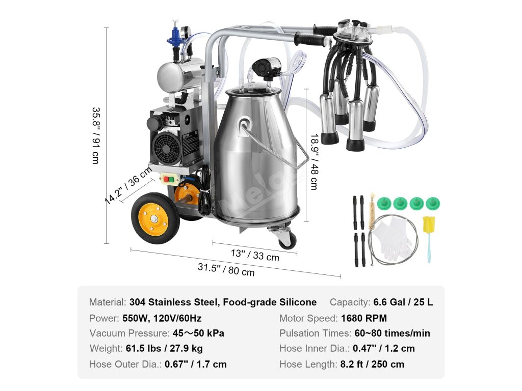 Elektrická dojicí jednotka pro krávy s nádrží 25L nerez 304