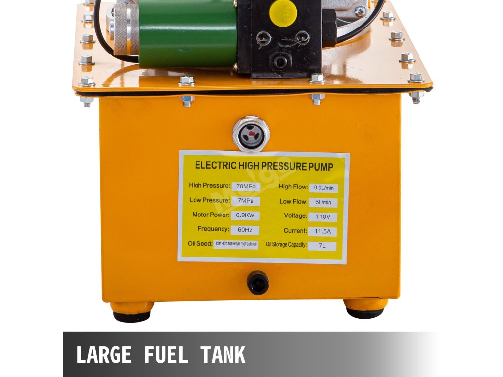Nádrž tohoto elektrického hydraulického čerpadla pojme 7 l oleje, 15-46 hydraulického oleje. Velká kapacita prodlužuje pracovní dobu. Kdykoli sledujte hydraulický válec přes viditelné okénko, abyste mohli včas vpustit olej.