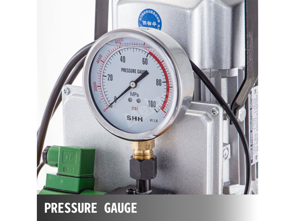 Přesný tlakoměr je přesný. Jedná se o hydraulické čerpadlo s tlakem 10 000 psi, který je vyšší než u většiny výrobků na trhu. Vysoký tlak je určen k pohonu pístu a nízký tlak k jeho opětovnému nastavení.