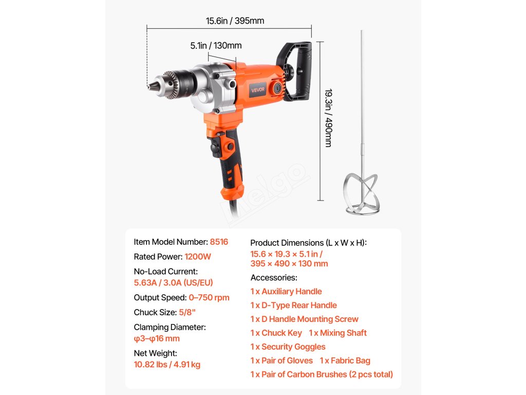Tento vrtací mixér s průměrem 5/8 palce (15,89 mm) kombinuje míchání a vrtání v jednom nástroji, který splňuje širokou škálu úkolů. Plynulá regulace otáček umožňuje přesné nastavení pro různé materiály, zatímco rukojeť nastavitelná v rozsahu 360° nabízí větší pohodlí a flexibilitu. Ideální pro kutilské i profesionální práce.