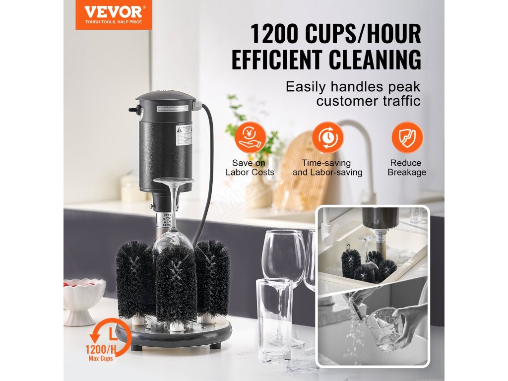 Tato myčka je vybavena 5 kartáči, které se flexibilně přizpůsobí různým typům skla s kulatým hrdlem. Je široce vhodná pro skleněné nádobí na šampaňské, pivní sklo, skleněné nádobí a poháry. Je ideální pro rodinná setkání i komerční prostory a splní všechny vaše potřeby v oblasti mytí.