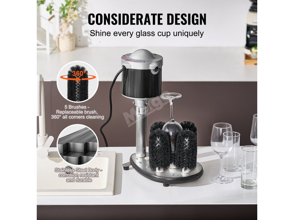 Tato myčka je vybavena 5 kartáči, které se flexibilně přizpůsobí různým typům skla s kulatým hrdlem. Je široce vhodná pro skleněné nádobí na šampaňské, pivní sklo, skleněné nádobí a poháry. Je ideální pro rodinná setkání i komerční prostory a splní všechny vaše potřeby v oblasti mytí.