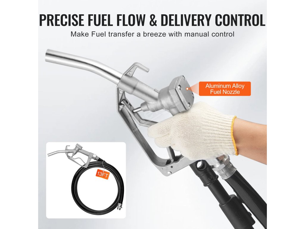 Čerpadlo pro přečerpávání paliva je vybaveno 13 stop dlouhou pryžovou výstupní hadicí, která je známá svou odolností proti tankování na dlouhé vzdálenosti, zamotávání a vysokým průtokem. Součástí je také 6,6ft průhledná vstupní hadice s kovovým síťovým filtrem, který zabraňuje vniknutí nečistot během tankování. Je navržena tak, aby zajistila, že vaše čerpadlo bude ve špičkové kondici.
