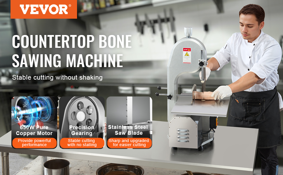 Odhalte svět kulinářských možností! Naše pila na kosti je ideální pro řezání žeber, zvěřiny, hovězích a jehněčích kostí, a dokonce i mražených ryb. Je to nepostradatelný nástroj pro restaurace, franšízové prodejny masa, supermarkety, masokombináty, zpracovny mořských plodů a jatka.