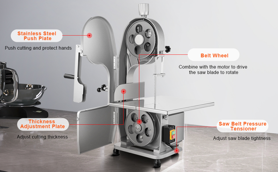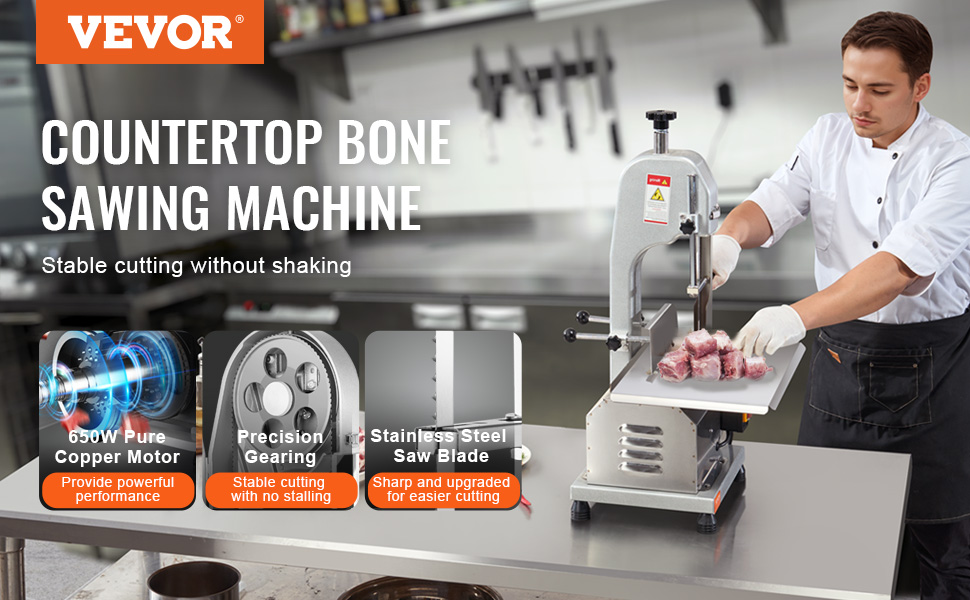 Odhalte svět kulinářských možností! Naše pila na kosti je ideální pro řezání žeber, zvěřiny, hovězích a jehněčích kostí, a dokonce i mražených ryb. Je to nepostradatelný nástroj pro restaurace, franšízové prodejny masa, supermarkety, masokombináty, zpracovny mořských plodů a jatka.