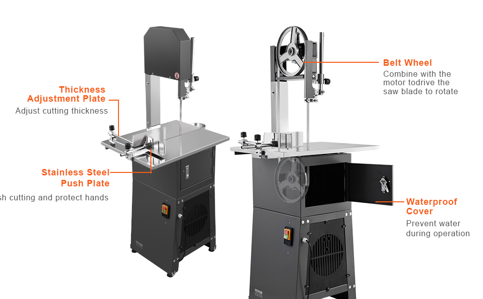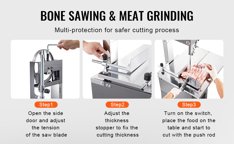 Stroj má dvě hlavní funkce: porcování kostí a mletí masa, což umožňuje pohodlnější mletí masa přímo po porcování. Je velmi vhodný pro porcování vepřových žeber, mraženého masa atd. a je široce používán v hotelech, restauracích, supermarketech, domácích kuchyních a na dalších místech.