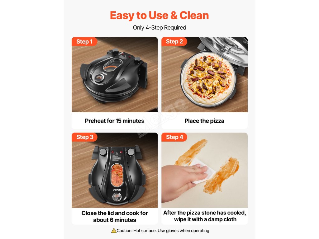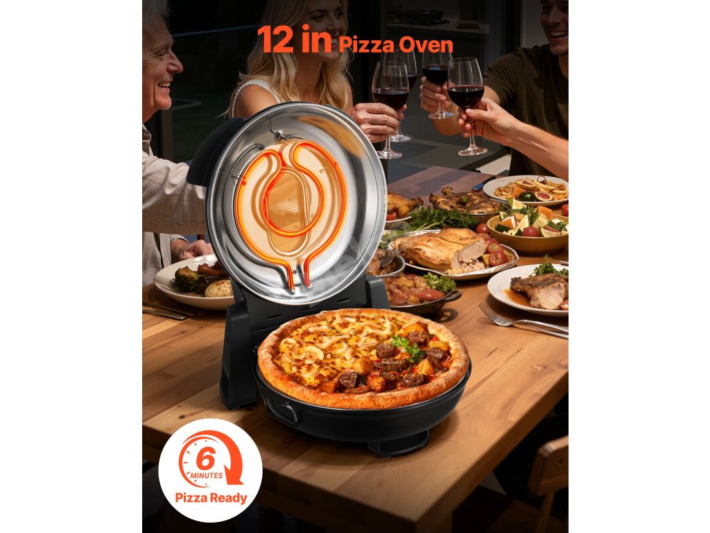Nemusíte zapínat troubu ani dlouho čekat - tato elektrická pec na pizzu vám umožní rychle připravit a vychutnat si křupavou, lahodnou a křupavou pizzu doma, což vám ušetří čas i námahu.
