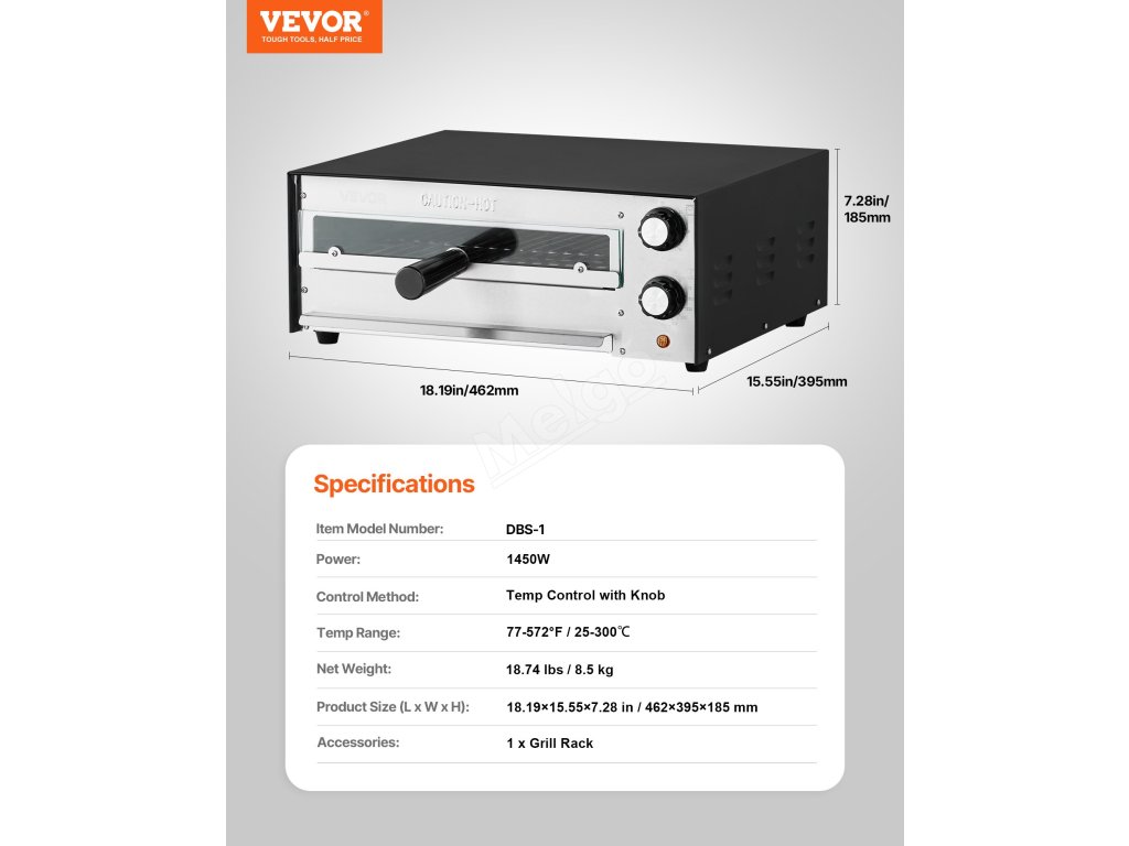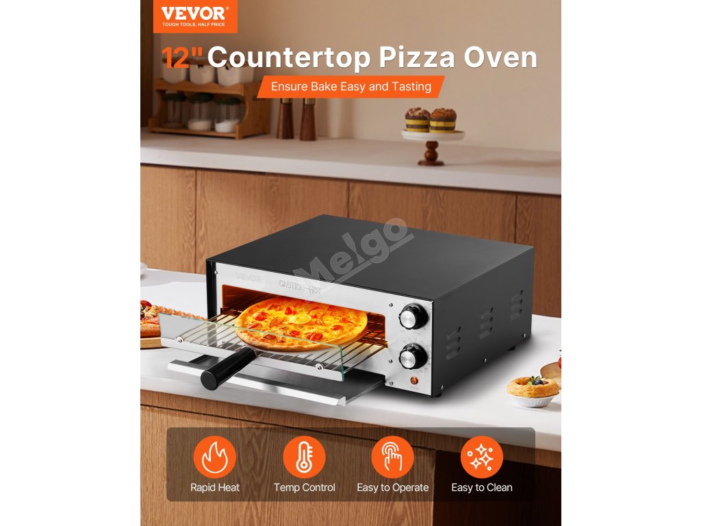 Elektrická pizza trouba 12" 1450W 572°F časovač termostat duální trubice