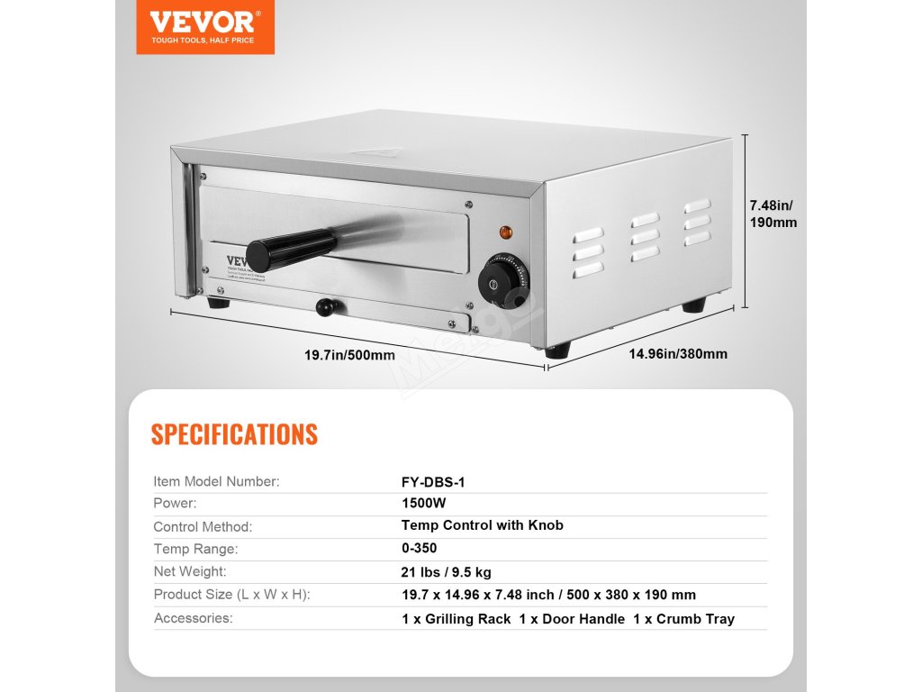 elektrická 12palcová pec na pizzu VEVOR se může pochlubit konstrukcí z potravinářské nerezové oceli, přesnou regulací teploty 122-662℉/50-350 ℃.Vysoký výkon 1500 W a topné trubky ve tvaru U zajišťují rovnoměrné a účinné rozložení tepla pro vždy dokonalé výsledky pečení!