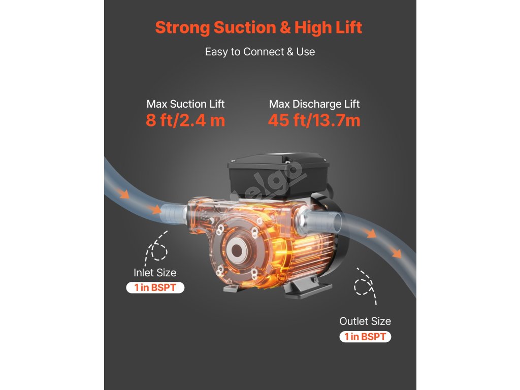Rychlé čerpání paliva s maximálním průtokem 16 GPM (60 l/min), maximální sací vzdáleností 2,4 m a maximálním zdvihem 13,7 m. Díky motoru z čisté mědi, litinové hlavě čerpadla a vestavěné ochraně proti přehřátí poskytuje toto čerpadlo spolehlivý výkon a bezpečný provoz pro naftu, petrolej a bionaftu.