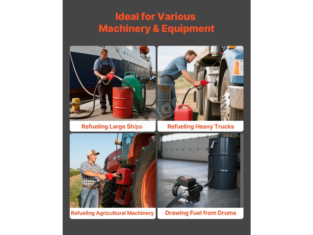 Toto přečerpávací čerpadlo nafty je dodáváno se standardními velikostmi vstupů a výstupů a umožňuje rychlé nastavení s různými palivovými hadicemi a zařízeními. Je kompatibilní s různými typy strojů poháněných naftou a skladovacích nádrží, takže doplňování paliva je rychlé a bezproblémové.