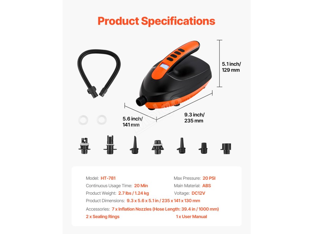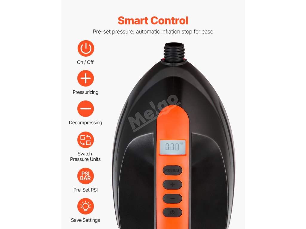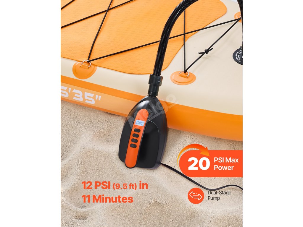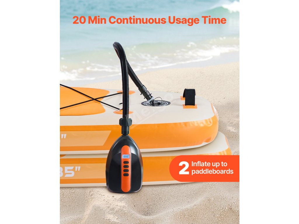 Tato elektrická pumpa na paddleboard je určena pro outdoorové nadšence a nafoukne ho na 12 PSI za méně než 9 minut. Díky digitálnímu displeji, paměťové funkci a lehké konstrukci je ideální pro kempování a cestování.