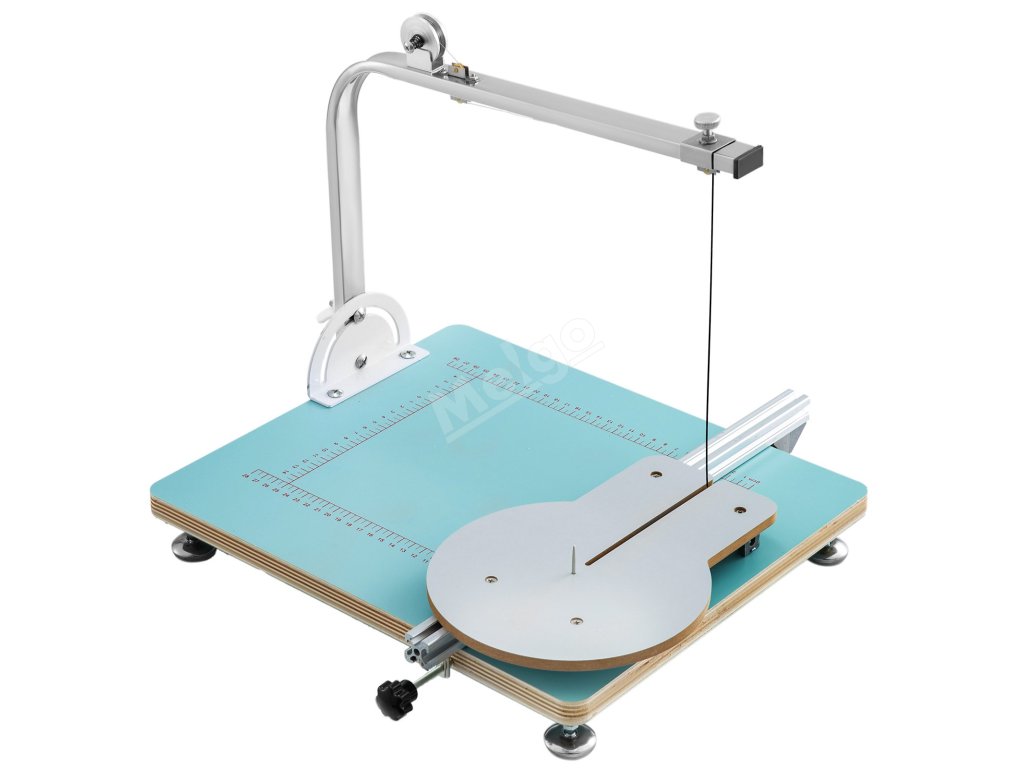 Na pracovním stole jsou zobrazena přesná měřítka, která umožňují přesnější řezání pěny podle potřeby.